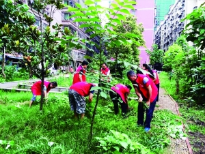 石鼓区潇湘街道演武坪社区志愿者服务队自发清理花坛垃圾