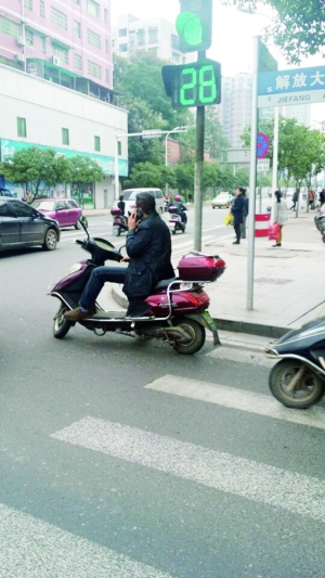 11月3日下午6点,下班高峰时段,记者在高新区解放大道与长丰大道的红绿灯路口处观察发现,开车打电话的现象十分普遍。在车辆排队等候绿灯时,不少驾驶员停车后都会习惯性地拿出手机看看,或者一边打电话一边驾驶;不少电动车驾驶员单手骑着电动车,只为腾出一只手接听电话、查看微信、短信……在记者蹲守的30分钟时间里,发现一边开车一边使用手机的机动车驾驶员就有9位,“开车通话两不误”的电动车司机达13位。