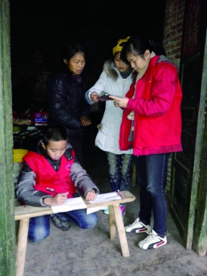 调查完毕后,李桂成的姑姑热情地端来准备过年用的瓜子、糖果、饼干等食品请我们吃。“不要客气,不要客气。”感恩、野草、李贞乐三个会员连连拒绝。蓝丝带志愿者协会有规定:不能吃受助方的东西,不能接受受助方的礼品,绝不能给受助方添任何麻烦。