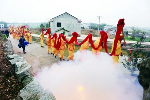 “起灯咯!”随着刘年春老人的一声吆喝,屋场里顿时鼓乐齐鸣,鞭炮满地欢跳。两堂龙灯从渣江镇乌鸦堂村曾冲明楚祖堂腾跃而出,在水泥大坪上舞出“满堂彩”“五节合福”等花样后,浩浩荡荡的龙灯队伍开始串屋场大拜年。2月21日,这一延续了200多年的传统习俗以其热闹而温暖的过程激活了记者儿时的记忆。