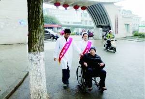 去年春运期间,南华医院青年志愿者服务队在火车站候车室设立了义诊工作站,为旅客免费体检、健康咨询、发放健康手册。3月5日,在义诊过程中,候车室进来了一位老大爷,他由火车站的工作人员搀扶着,医生立即上前查看,当时大爷已经呼吸急促,四肢乏力,双下肢浮肿,志愿者马上扶大爷坐下,进行体格检查。初步诊断这位大爷心衰合并肺部感染,还有低血糖症状。情况紧急,志愿者们马上联系火车站的工作人员,很快为老人提供了暖炉,并送来了姜茶、面包等食物。经了解,这位大爷是位孤寡老人,独自一人去永州寻亲无果,回株洲老家途经衡阳的时候突发病情。在青年志愿者们的诊治下,确认老人身体无恙后,大家才齐心协力护送老人坐上了回家的火车。