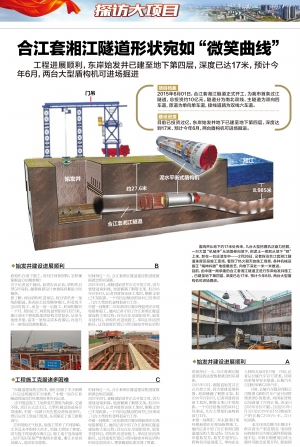“在隧道建设的过程中,我们克服了不少困难,以后还将遇到不少困难。”中建一局合江套隧道现场项目经理胡应林告诉记者。 由于隧道施工工地所处位置较为偏僻,交通不便,项目正式动工后,大型机械设备进场非常困难,中建一局就只有先把设备拆成块件,然后运到工地进行组装,从而保证了施工如期进行。 去年阴雨天气较多,给施工带来了不利影响。尤其是去年的特大洪水,给施工增加了难度,因为施工现场就在湘江边,施工地下连续墙时,如不及时采取严密的防水措施,湘江水很容易灌入,造成安全隐患。 隧道大断面施工也是对于施工技术的一种考验,众所周知,断面越大,施工难度也就越大。胡应林介绍,隧道单线轮廓开挖直径达11.65米,管片外径为11.3米,内径为10.3米,壁厚0.5米。 湘江复杂的地质结构也将给隧道施工带来不小的麻烦,因为湘江底部“上软下硬”,同时存在6处以上溶洞(最大溶洞长95米,规模达1950立方),这种地质结构会给盾构机掘进带来难度。