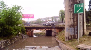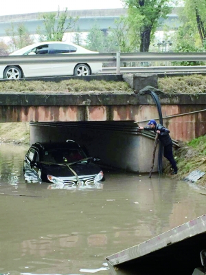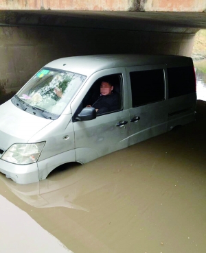 本报讯 2月26日,因过去几天的降雨天气,蔡伦大道与衡州大道交汇处的杨柳立交桥下方涵洞出现深达1米多的积水。苦于积水现场无任何警示牌,多台途经该路段的车辆“中招”,被积水围困的车辆经过多方救援才得以摆脱困境。