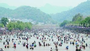 4月10日至13日,第十三届中国·孟连娜允神鱼节在普洱市孟连县举行。在期间的万人捉鱼狂欢活动上,捉鱼大军浩浩荡荡涌入南垒河,顿时河岸上下人声鼎沸,人欢鱼跃。