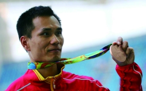 这枚含金量十足的铜牌,对中国来说同样弥足珍贵,多项田径历史随之而改写。董斌成为继1984年奥运会获得男子跳高铜牌的朱建华之后,32年内第二位在奥运男子田赛项目上摘得奖牌的中国选手。在奥运三级跳项目上,董斌更是成为中国第一人,为中国实现奖牌零的突破。
