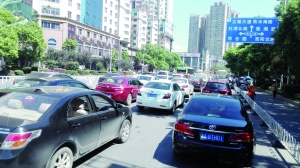 昨上午,记者在船山中路晶珠广场路口看见,蒸湘北路由南往北车流量大,交汇口车行较为缓慢;晶珠广场至船山大桥施工工地上,不时有机动车或摩的擅闯工地,碾压出道道凹痕,施工人员无奈重新返工。