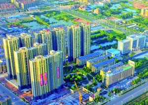在高新区板块上,一幢幢高楼拔地而起,在阳光的照射下熠熠生辉,通过航空拍摄视觉,勾勒出了一幅生动的繁华景象。