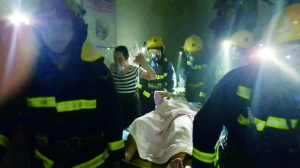 “这里还有人!”在住院部三楼拐角处的一个病房里,2名刚剖腹产生下宝宝的产妇虚弱地躺在病床上。消防官兵循着声音找到了病房,用担架将2名产妇抬到了安全地点。