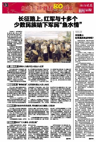 红军经过少数民族地区时,积极宣传中国共产党的政策和红军纪律,提倡各民族平等,反对民族压迫,尊重少数民族的宗教信仰和风俗习惯,支持和帮助少数民族开展对反动政权的经济和政治斗争,帮助少数民族建立武装和人民政权。一路上留下了许多红军与各少数民族团结友好、互相帮助的佳话。