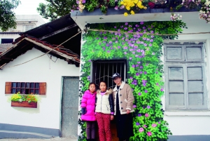 “墙绘的设计者王亚丽正好住在清泉里社区,对这里熟悉、有感情,画出来的作品与周边环境很契合。”清泉里社区主任廖向阳指着一面花墙告诉记者,这户居民谢顶权奶奶是附近闻名的养花高手,二楼平台上种满了各色各样的花卉,满园春色容不下,一串串挂满繁花的枝条从平台垂吊下来,墙绘设计者抓住这一特色,让这面外墙绽放四季常开的花朵,与自然的花枝无缝衔接,令户主谢奶奶赞不绝口的同时,引得行人纷纷驻足观赏。