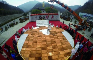 3月11日,老子诞辰纪念日前夕,道教始祖李耳的归隐之地河南洛阳老君山,“超级大蛋糕”在世界第一高的老子铜像下赶制。据了解,主办方用鸡蛋30000枚、白糖900斤、纯牛奶600斤,加上面粉等物料制作的成品蛋糕,重量将超过一万斤。由于面积较大,操作难度巨大,主办方动用了推土机、吊车上料。这个超级大蛋糕会在3月12日(即老子的生日农历二月十五)为老子祈福后,免费分给民众共享。(据中新网报道)