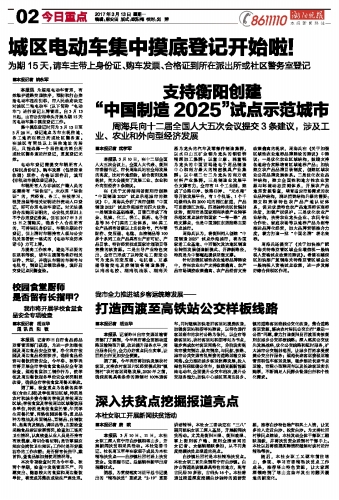 支持衡阳创建 “中国制造2025”试点示范城市