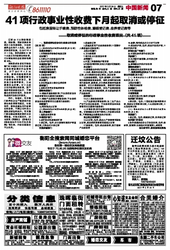 41项行政事业性收费下月起取消或停征