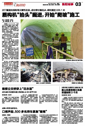 盾构机“抬头”掘进,开始“爬坡”施工