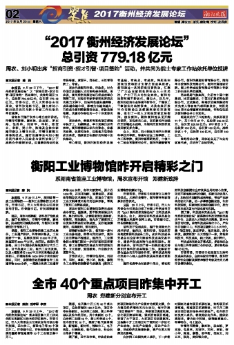 “2017衡州经济发展论坛” 总引资779.18亿元