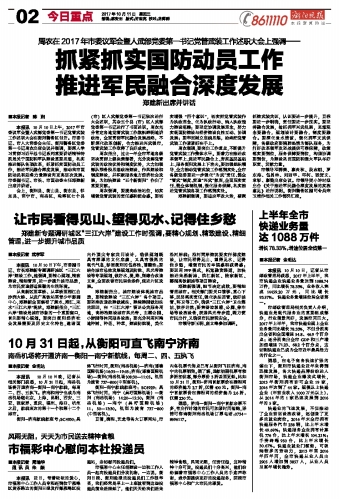 抓紧抓实国防动员工作 推进军民融合深度发展