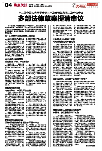 多部法律草案提请审议