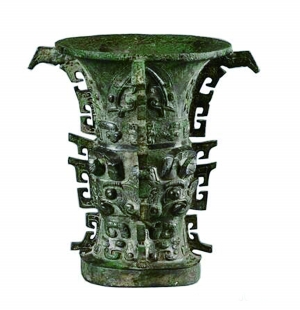 经考古人员确认,这是一尊西周早期时的青铜酒器,浮雕为“饕餮纹”。这尊铜器成了宝鸡市博物馆1958年成立后收藏的第一件青铜器。王竑介绍,1975年,饕餮铜尊因其造型图案精美被选送至国家文物局,作为全国新出土的文物精品出国展出。后来,上海博物馆馆长马承源在清除铜尊的蚀锈时,发现了惊喜。“当时马先生有些疑惑,这么大一件青铜器怎么会没有文字,当他清理何尊内部泥土时,有了一个惊人的发现。”王竑介绍,马承源在铜尊内胆底部发现了一篇铭文,有“宅兹中国”的文字。