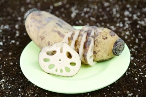 莲藕含有大量的纤维素与矿物质,铁元素的含量比较高,可促进人体的代谢,健脾开胃。在挑选莲藕时,要选外皮呈黄褐色、肉肥厚而白的。没切过的莲藕可在室温中放置一周,而切开后的莲藕切面部分很容易氧化变黑,甚至腐烂,最好覆以保鲜膜,冷藏保存。