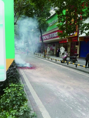3月2日14时20分,石鼓区蒸阳北路与常胜路交汇处的公交站旁,某家纺店在行道树下烧香燃蜡,并在马路辅道上燃放鞭炮,既污染了环境,又阻碍了交通,同时还增加了环卫工清扫负担。