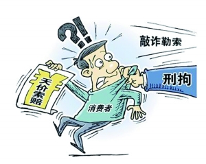 1.知假购假,索赔者还通过反复向行政部门进行投诉,索赔金额累计高达数万元,其标准完全超过了法律范围,形成了事实上的过度维权现象。既造成了商家的权利受到损害,又极大地浪费了公共资源,最后因涉嫌敲诈勒索而被刑拘,可谓得不偿失。