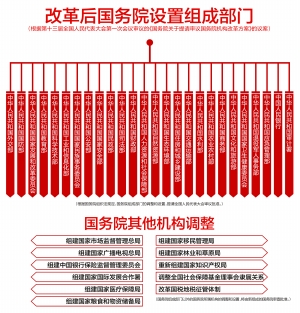 根据该方案,改革后,除国务院办公厅外,国务院设置组成部门26个,国务院正部级机构减少8个,副部级机构减少7个。此次提请大会审议的国务院机构改革方案(草案),将于3月17日,全国人民代表大会第五次全体会议时表决。