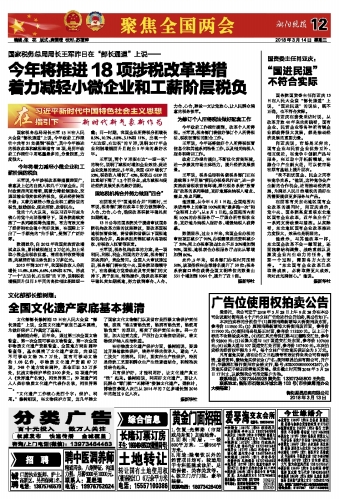 今年将推进18项涉税改革举措 着力减轻小微企业和工薪阶层税负