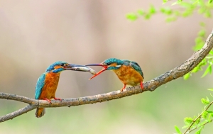 8.普通翠鸟。小型鸟类,体色较淡,耳覆羽棕色,翅和尾较蓝。性孤独,平时常独栖在近水边的树枝或岩石上,食物以小鱼为主。