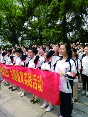 4月4日,衡阳市一中520班全体学生在老师们的带领下,集聚岳屏公园衡阳抗战纪念城碑下,举行2018年清明祭扫先烈活动。活动现场庄严肃穆,58名同学向先烈默哀,行鞠躬礼,敬献花篮。王中平 贺 玥 摄