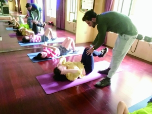 最后汉森教练让大家做了平板支撑、交叉腿半蹲、仰卧抬腿等小运动。在教学和学习中,大家慢慢在教练的帮助下,学到了正确的健身姿势和良好的饮食习惯,在汗水和欢笑声中,结束了当天全部的课程。