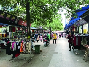 当日下午5时许,记者在衡阳商业步行街看到,除了蒸湘北路附近个别水果摊位存在占道经营的情况外,门店外摆的现象已经大幅减少,原来摆在步行街道路两旁和中间的不锈钢衣架和商品,多数都被商家移至店内,整条道路变得宽敞清爽。