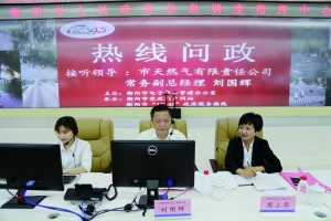 本报讯 5月9日上午9点,衡阳市天然气有限责任公司常务副总刘国辉率公司市场开发客服管理部、工程项目管理部、经营管理部、行政党群工作部等部门负责人来到衡阳市“12345”政府服务热线受理大厅参加第三十二期热线问政活动。