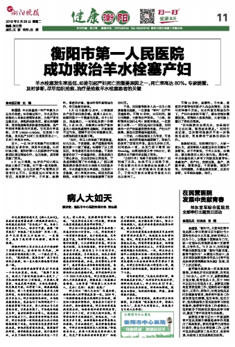 衡阳市第一人民医院 成功救治羊水栓塞产妇