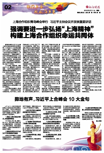 强调要进一步弘扬“上海精神” 构建上海合作组织命运共同体