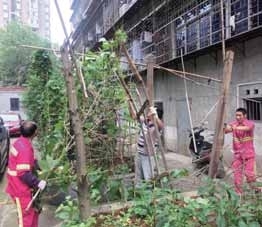 本报讯 在前期下达通知后, 6月21日,珠晖区粤汉街道安居里社区工作人员和城管执法人员来到衡阳站职工生活小区,安排专人对小区绿化带内的蔬菜进行清除。