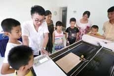 另外40名学生是通过“掌上衡阳”客户端、“衡阳日报”微信公众号共同开展的“我的科技馆的一天”有奖征文活动招募而来。当天上午,他们分成四组,分别参观了衡阳市科技馆“VR体验”“创客空间”“3D打印与激光雕刻”“机器人展教”四个展厅,在展厅讲解员的带领下近距离探索科学的奥秘。在衡阳市科技馆3D打印展厅内,讲解员向大家展示了如何用3D打印机打印手机支架、象棋、文具盒等。一块小木板,按照设定好的程序,只要短短数秒,就能刻画出一只小鱼,并且均匀地切割好。一只鸟、一只蝴蝶……都能用激光雕刻机制作出来,孩子们看得认真、听得仔细,还开心地与激光雕刻出来的“动物”合影。