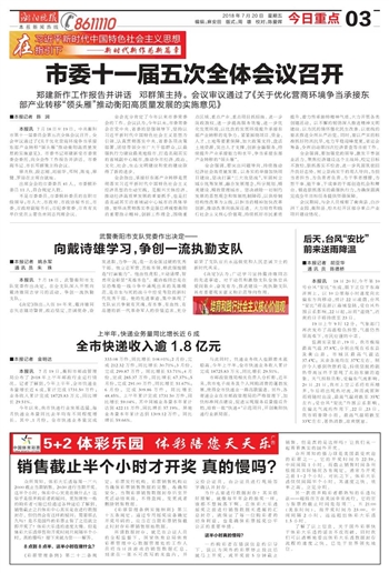 全市快递收入逾1.8亿元