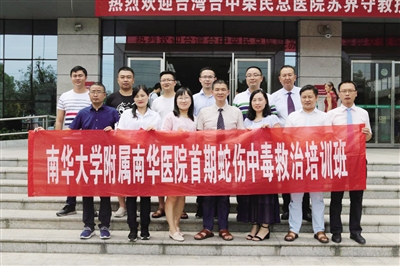 本报讯 7月25日,为期3个月的“中国南华首期蛇伤救治培训班”在南华大学附属南华医院顺利结业,首批12名学员与该院蛇伤基地的全体医护人员参加结业仪式。院长汤永红、副院长廖勇仕等院领导出席。汤永红希望学员们将所学知识充分运用到实际工作中,切实提升基层科学系统处理蛇伤的技能,为当地百姓的健康保驾护航。