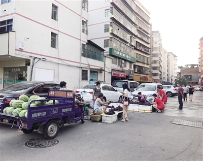 摊贩占道,车辆乱停。