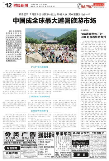 据了解,与“火炉”城市相对应,云南、贵州、甘肃、青海、山东、内蒙古等地成为热门避暑旅游目的地。这些地方除了具备气温上的优势,在旅游资源丰富性、交通运力、酒店接待能力等方面也处于优势地位。