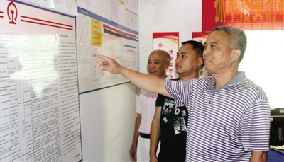 广铁工务大修段规范标准化管理工作,在段内各车间精心制作工附业标准化大修作业流程上墙,使大家一目了然,各司其责,促进了安全生产和各项工作的顺利完全。图为近日段领导在衡阳车间检查标准化管理工作。 通讯员 陈志清 全 芳 摄