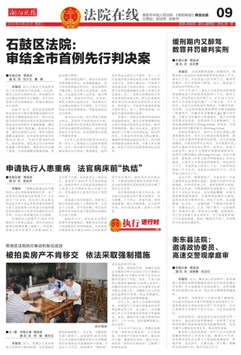 石鼓区法院: 审结全市首例先行判决案