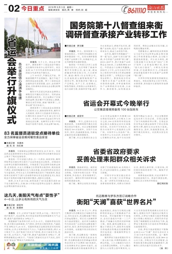 衡阳晚报 版面二 A02 2018-09-031 2018年09月03日 星期一