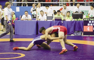 本届省运会(青少年组)国际式摔跤比赛设男子甲、乙、丙组及女子甲、乙、丙组共6个竞赛组别,竞赛项目包括男子组古典式、自由式共28个重量级别和女子组自由式共14个重量级别,共有15支代表队322名参赛选手参加,从9月7日开赛,经过4天角逐,49枚金牌已全部决出。衡阳队总分为60分,共取得金牌2枚,铜牌4枚。