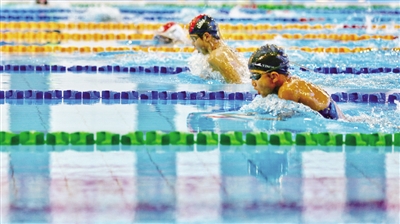 10日上午,在男子甲组100米自由泳决赛中,我市选手欧阳昊霖获得铜牌;在女子乙组200米蝶泳决赛中,我市选手袁艺鸣前150米处于第二名,落后于第一名1秒多,后50米她突然发力,全程用时2分32.76秒,最终以0.25秒的优势险胜对手,成为金牌得主,为我市代表队在游泳项目上夺得首金。“这是我们的技术战略,要求选手根据自己的体能情况进行调节,适时反超,袁艺鸣此次属于超常发挥,她比平时训练快了1—2秒。”衡阳市游泳队教练丁晓旭高兴地说。