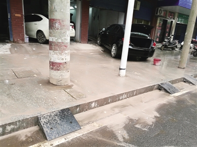 13日上午,在雁城路附近,记者看见一辆黑色小汽车径直泊停在人行道上,挤占了大半过道,过往行人无奈绕走机动车道。记者循声望去,一名身穿休闲夹克衫的男青年,正埋头对车头的漆面进行打磨抛光处理,车尾放置着一只红色塑料桶,地面满是泥浆污渍。家住西站正街的赵大伯告诉记者,这家汽车维修店经常占用人行道维修汽车,弄得满地油渍污垢,异味刺鼻难闻。希望职能部门责成维修人员进店规范作业,消除隐患,还路于民。