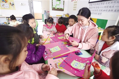 好课程是幼儿园的办园基础,副园长谢吉林告诉记者,如今,幼儿美术教学课已不再像过去那样照着课本“看图画画”,教师会着重培养孩子们的美工创意,在课堂上做涂色卡、硬纸画、变废为宝等手工制作。“美工创意能让幼儿真正体会变废旧为美丽、变无用为有用的乐趣,让绿色环保理念渗透到幼儿的日常生活。”