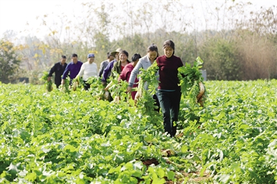 本报讯 俗话说:“冬吃萝卜夏吃姜,不用郎中开处方。”随着天气转凉,白萝卜已成为市民餐桌上不可或缺的一道菜。11月26日,金甲岭某白萝卜种植基地一片繁忙景象,菜农正在对白萝卜进行收摘、清洁、分类。该基地白萝卜种植面积达2000亩,预计产量达450万公斤,产值将达到500万元;帮扶贫困户581人参与萝卜种植产业,人均可增收3800余元。