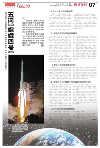 但是,“嫦娥”的发射时间为什么选择在夜里?“嫦娥”的“座驾”有何特别?在月球背面着陆难度有多大?而此次“嫦娥四号”将锁定哪两个“国际首次”目标?