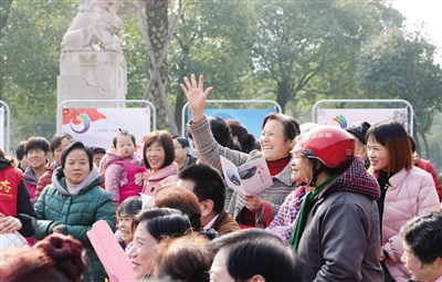 昨日上午,由高新区华兴街道主办、祥光社区承办的“党建引领中国梦,同心共创文明城”文艺汇演巡演活动在船山公园上演。活动以节目表演和知识问答形式向广大群众传播文明理念,提高大家对创建全国文明城市的知晓率、参与率与满意率。图为群众积极参与“创文”知识问答。